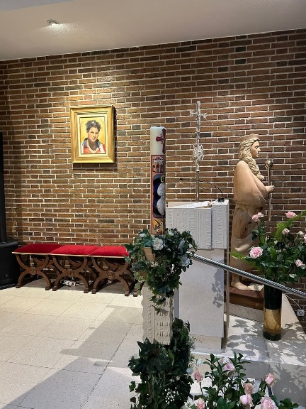 Orando ante el Cirio pascual.