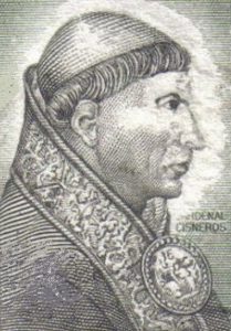 Este fraile franciscano, nacido en la madrileña villa de Torrelaguna que fue un personaje histórico clave para España, ostentó en vida numerosas funciones en Sigüenza, en la orden franciscana, etc. Destacamos que fue el primer arzobispo de Granada; Confesor y consejero de Isabel de Castilla, la reina Católica; Arzobispo de Toledo, Primado de España; Creador de la Universidad Cisneariana de Alcalá de Henares; Inquisidor general de Castilla; Presidente del Consejo de Regencia de Castilla (1506-1507); Cardenal presbítero de la Iglesia romana con el título de Santa Balbina; Gobernador del Reino de Castilla (1516-1517); tras su obra más querida, la Biblia Poliglota Complutense, funda la Capilla Mozárabe de Toledo imprimiendo el Misal y el Libro del Oficio Divino (libro de las Horas) del Rito Gotho-Hispano que habían preservados los mozárabes toledanos…».