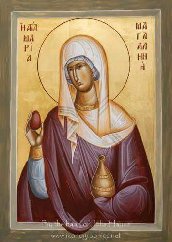 La santa mirófora de Galilea con el huevo de Pascua y el perfume