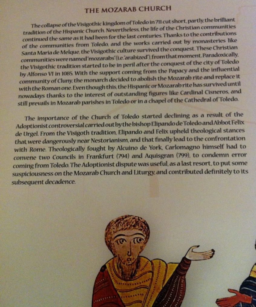 A pesar de algún fallo linguístico, se entiende bien la historia de la iglesia mozárabe en España que todos los que queremos divulgar este rito debemos saber. Es, sin duda, una historia fascinante. Los que asistimos cada martes de la celebración de la misa mozárabe sabemos, sin embargo, que, contrario a lo que dice el texto, este rito no desapareció sino que siguió existiendo e incluso fue celebrado por el Papa San Juan Pablo II en el Vaticano.