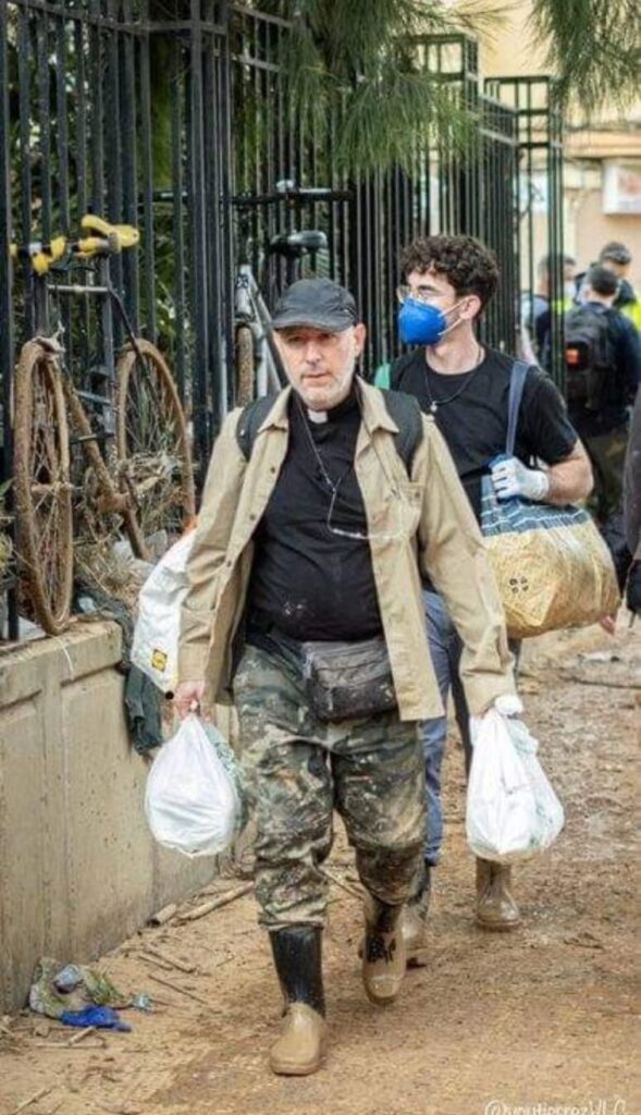 No se les caen los anillos, ni se les sube a la cabeza el cleriman. Más bien se calzan las botas de agua y se arman con palas, para ser uno más, entre toda esa gente solidaria, buena y generosa, que acude en auxilio de los que necesitan nuestra ayuda.