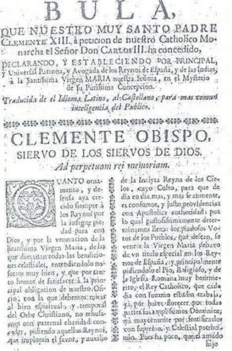 Inicio de la Bula Papal que proclama a la Virgen María,