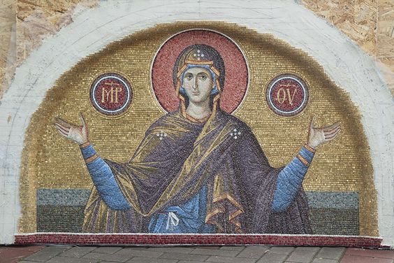Mosaico de la Virgen Orante, según el esquema de la Virgen del Signo