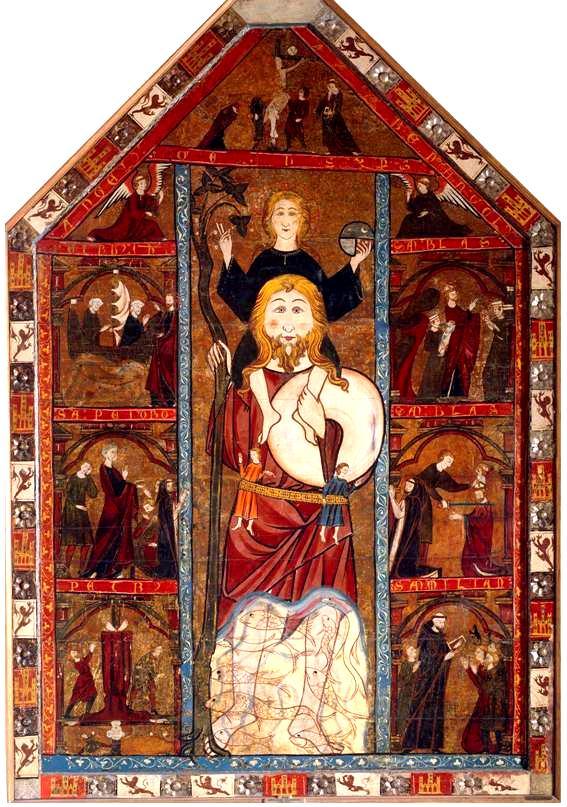 La pintura española del estilo gótico lineal se halla representada en el Museo Nacional del Prado por este retablo prácticamente pentagonal, forma que se dio en la Corona de Castilla durante los siglos XIII y XIV, y cuya efigie titular muestra a San Cristóbal. El origen de esta tipología se situaría no tanto en el contexto de afianzamiento del arte gótico sino en el contexto, inmediatamente anterior, de la disolución del arte románico.