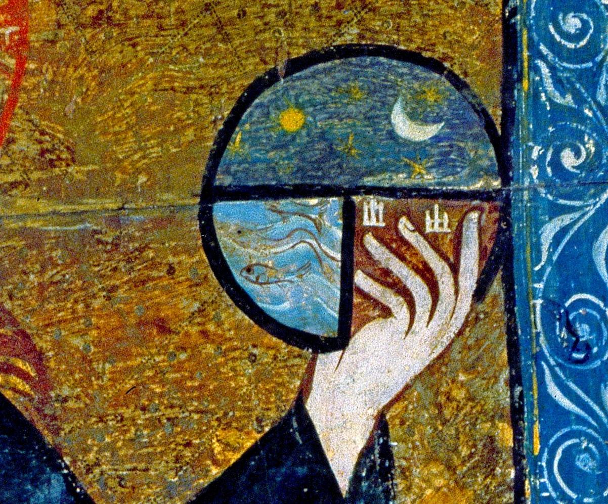 De este modo el autor anónimo quiso subrayar no sólo la condición de Cristo como Rey Eterno del mundo, sino también Su condición de Creador del mismo, de acuerdo con la tradición de Su declaración a San Cristóbal, recogida en ‘La leyenda dorada’:
