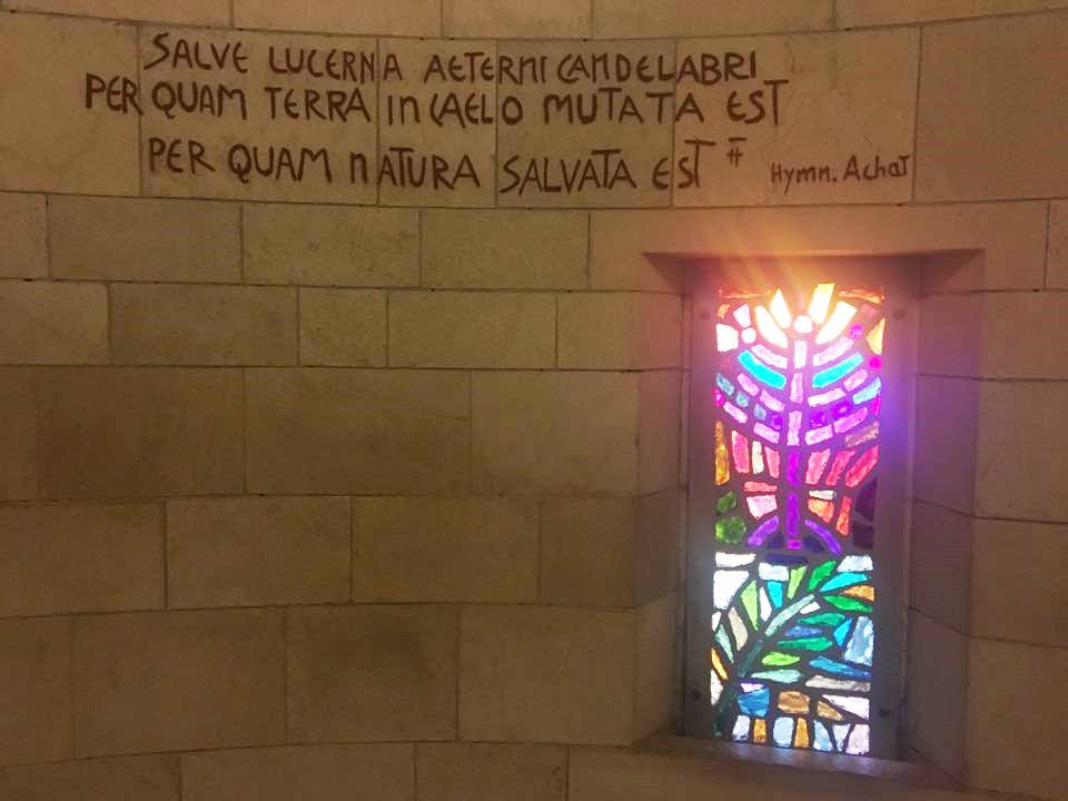 Si lo entiendo, está referido a María, hendidura transparente entre lo alto y lo bajo, lucerna, como la vidriera de la foto, por la que brilla el ‘eterno candelabro’, (¿el cuerpo de?) Nuestro Señor Jesucristo, Luz del mundo (‘Ego sum lux mundi’), como vieron Pedro, Santiago y Juan en su Transfiguración.