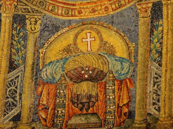 Cruz en el Trono (Baptisterio neoniano) en Rávena (Italia)